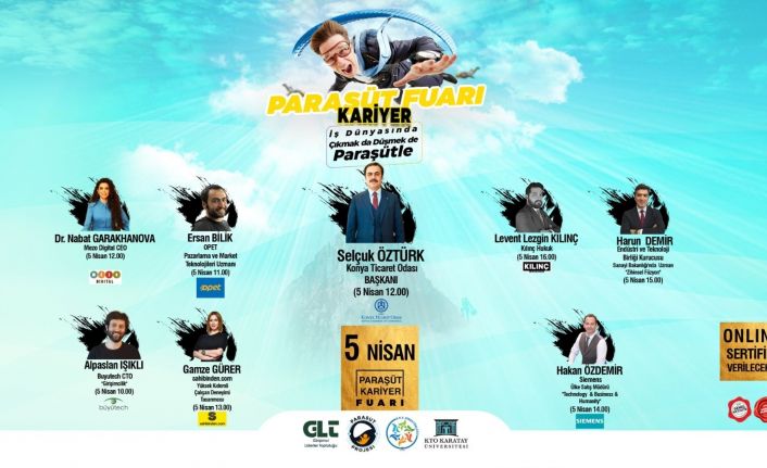 KTO Karatay Üniversitesi, bölgenin en büyük Dijital Kariyer Fuarı’na ev sahipliği yapacak. KTO Karatay Üniversitesi Sağlık, Kültür ve Sportif Faaliyetler Direktörlüğü Kariyer Gelişim ve Mezun İlişkileri Ofisi tarafından “İş Hayatında Çıkmak da Düşmek de Paraşütle” mottosuyla düzenlenen çevrimiçi gerçekleştirilecek “Paraşüt Kariyer Fuarı” beş gün sürecek. Fuarda, 42 konuğun katılım sağlayacağı oturumlar ve 10 farklı atölye bulunuyor. Fuarın ilk gününde, KTO Karatay Üniversitesi Mütevelli Heyeti Başkanı Selçuk Öztürk de konuk olacak. Birçok önemli markanın katılacağı fuarda, KTO Karataylı öğrenci ve mezunlar farklı sektörlerden ünlü isimlerle çevrimiçi olarak buluşma fırsatı yakalayacak ve farklı alanlarda yetkin kişilerden kariyer basamaklarında örnek olacak tavsiyeleri dinleyebilecek. Fuara ayrıca lise öğrencileri, üniversite adayları ve veliler de katılım sağlayabilecek. Dijital Paraşüt Kariyer Fuarı’na katılım sağlayanlar, sektörün öncü isimleri ile tanışma, önemli iş bağlantıları oluşturma şansına erişecekler ve sektördeki öncü firmalar ile buluşarak, iş ve staj bulma süreçlerine ve istihdamlarına katkı sağlayacaklar. Ayrıca yapılacak olan atölyeler, seminer, eğitim, vaka analizleri ve çevrimiçi mülakatlarla adeta kariyer simülasyonu yaşayacaklar.