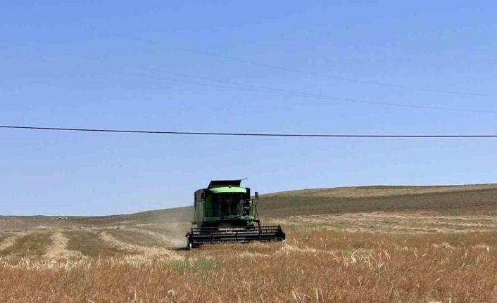 Konya’nın Kulu ilçesinde arpa, buğday ve diğer mahsullere alternatif olarak deneme amaçlı ekilen ketencik bitkisinin hasadı yapıldı.