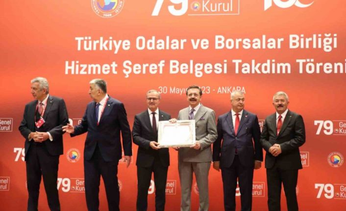 Konya Sanayi Odası (KSO) Meclis Başkanı Memiş Kütükcü, Türkiye Odalar ve Borsalar Birliği (TOBB) tarafından, TOBB camiasına ve Türkiye ekonomisine hizmette bulunan delegelere verilen Hizmet Şeref Belgesi’ni, TOBB Başkanı Rifat Hisarcıklıoğlu’nun elinden aldı.