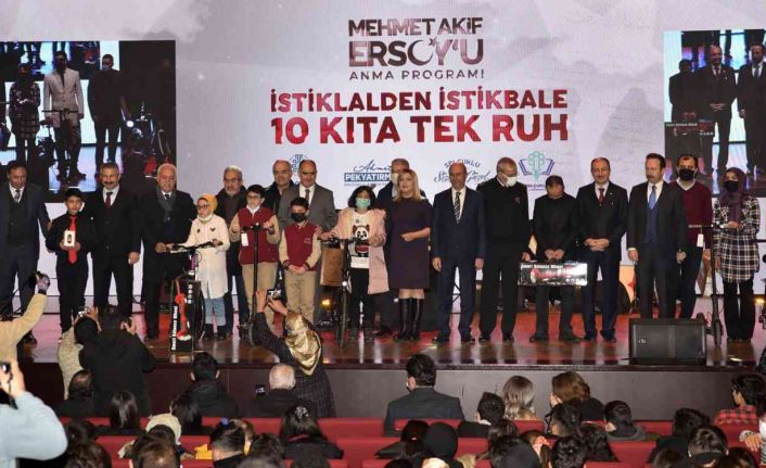 Selçuklu Kongre Merkezi’nde düzenlenen program Kur’an-ı Kerim tilaveti, İstiklal Şairi Mehmet Akif Ersoy için okunan hatim duası ve Akif’in hayatının canlandırıldığı tiyatro gösterisiyle başladı. İstiklal Marşı okuma yarışmasının birincisi olan öğrencinin milli marşımızın 10 kıtasını okuması da salondan büyük alkış aldı.