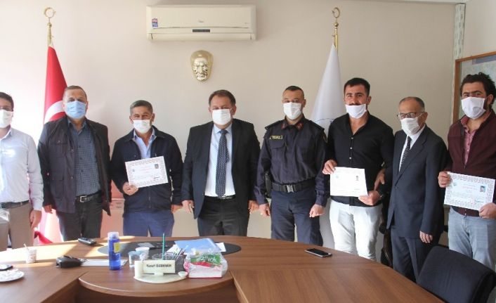Orman yangınına müdahale eden çiftçi aileye teşekkür belgesi