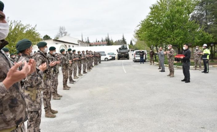 Konya’da, Polis Özel Harekat (PÖH) Şube Müdürlüğü’ne bağlı 60 kişilik tim dualarla Suriye’ye uğurlandı.