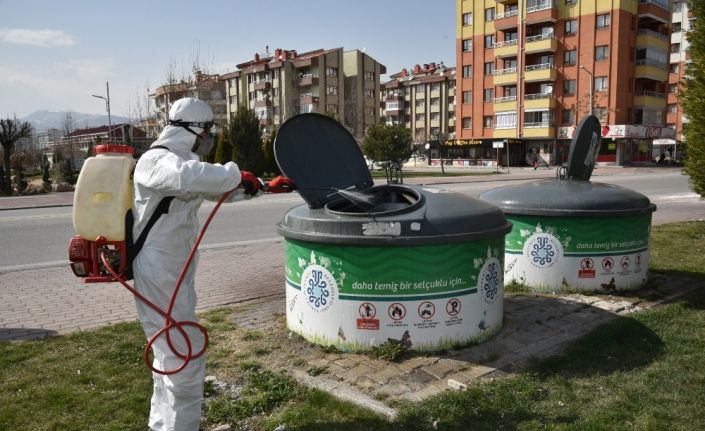 Selçuklu Belediyesinden yapılan açıklamada, tüm dünyayı etkisi altına alan ve Türkiye’de de görülen korona virüse karşı alınan önlemlerin dikkatle uygulandığı belirtilerek, "Selçuklu Belediyesi Sağlık İşleri ve Çevre Koruma Kontrol Müdürlüğü tarafından oluşturulan dezenfekte ekipleri aralıksız olarak çalışmalarını sürdürüyor. Selçuklu ilçe sınırları içerisinde bulunan resmi kurumlar, okullar, sosyal tesisler, toplu kullanım alanları ve tüm çöp konteynerleri dezenfekte edilmeye devam ediliyor. Çalışmalarla ilçe genelinde bulunan çöp konteynerlerinin tamamı dezenfekte edilirken, ikinci tur dezenfekte çalışmaları da yüzde 80 oranında tamamlandı. Selçuklu Belediyesi tüm imkanlarını seferber etmiş durumda" denildi.