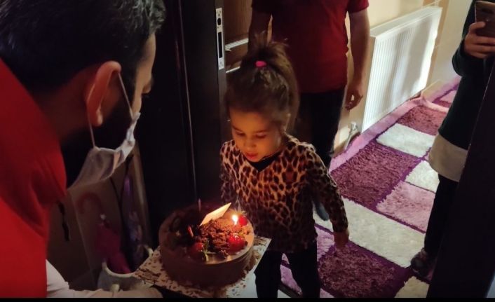 Konya’da, korona virüs salgını nedeniyle dışarı çıkamayan 5 yaşındaki kız çocuğuna kapısına giden görevliler doğum günü sürprizi yaptı.