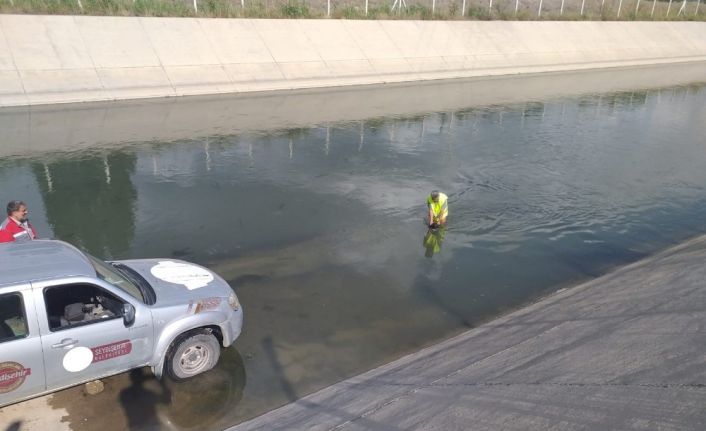 Konya’nın Seydişehir ilçesinde sulama kanalına düşen köpek kurtarıldı.