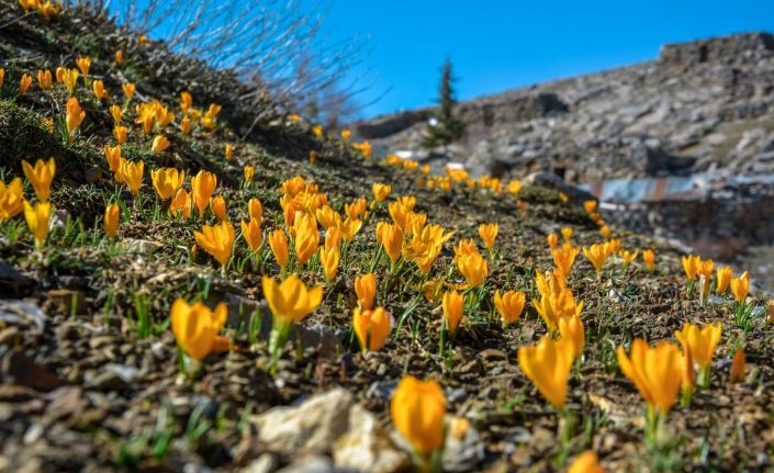 Yaylaya göçün habercisi sarı çiğdemler açtı