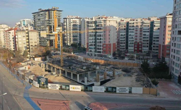 Konya Büyükşehir Belediyesi’nin Şefik Can Caddesi üzerinde yapımını sürdürdüğü Yenişehir Sosyal Tesisi ve Lise Medeniyet Akademisi inşaatı hızla ilerliyor.