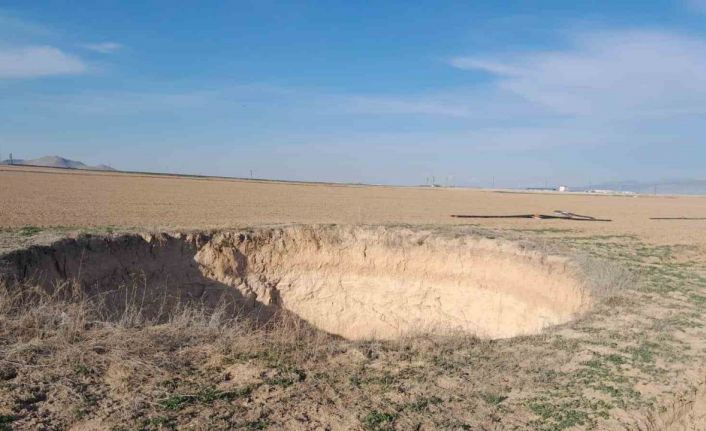 Karapınar ilçesi Apak mevkiinde Ahmet Boztaş’a ait 220 dekar tarlada 6 yıl önce oluşan obruk, toprakla doldurularak ekime devam edildi. Ancak geçtiğimiz günlerde tarla sahipleri, aynı noktada yeniden çökme meydana geldiğini fark etti. Tarlada herhangi bir sorun görülmeden uzun yıllar ekim yapılmasına rağmen, son dönemde yaşanan çöküntü tedirginlik oluşturdu. Çiftçiler, çöküntünün yaklaşık 15 gün önce meydana geldiğini tahmin ediyor.