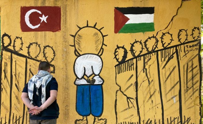 11 yaşındaki karikatürist Taha Arben Vurgun, İsrail güçleri tarafından 10 Mayıs’ta Gazze’ye yönelik başlatılan bombalı saldırılarda hayatını kaybeden 65 çocuk için Filistinli çocukların sembolü olan “Hanzala” karikatürünü köyünün duvarına çizerek, ellerini arkaya bağlayarak sırtını dönüp poz verdi.