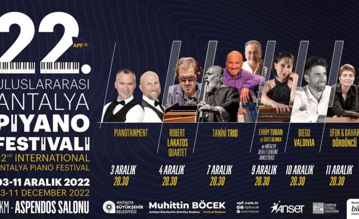 2000 yılından bu yana Antalya’nın uluslararası sanat şehri kimliğine katkıda bulunan Avrupa Festivaller Birliği (EFA) üyesi Uluslararası Antalya Piyano Festivali, bu yıl 3-11 Aralık tarihleri arasında yapılacak. Antalya Büyükşehir Belediyesi’nin ev sahipliğinde 22‘ncisi gerçekleşecek olan festival, dünyaca ünlü sanatçıları müzikseverlerle buluşturacak.