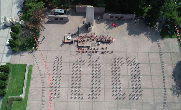 Zeybek gösterisi sokaktan geçen izleyicilerden de tam not alırken, dron ile çekilen görüntülerde Milli Mücade’lenin 100. yılı şerefine zeybek oynayanların da oyun alanına 100 yazdığı görüldü.