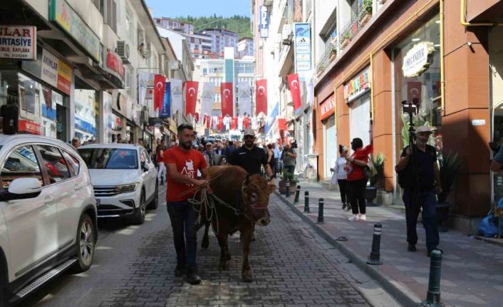 Artvin’de bu yıl 42.’si düzenlenecek olan Kafkasör Kültür Turizm ve Sanat Festivali Kortej yürüyüşüyle başladı. Festivalin en önemli organizasyonu olan 200 yıllık geleneğe sahip boğa güreşleri nedeniyle kortejde güreş boğaları da yerini aldı. Kortej yürüyüşü ‘Arıza’ isimli 550 kilo ağırlığında boğa eşliğinde gerçekleşti. Halitpaşa Meydanında toplanan vatandaşlar, Valilik önündeki Atatürk anıtına çelenk bıraktı, ardından saygı duruşunda bulunularak İstiklal Marşı okundu.