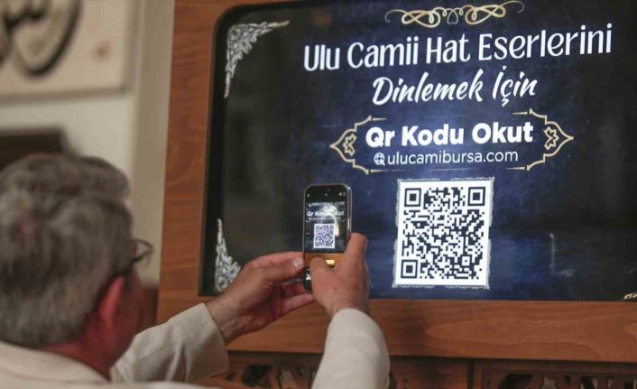 Bursa’nın simgelerinden Ulu Cami’de yer alan hat eserleri dijital ortama aktarıldı. Tarihi camiyi ziyaret eden turistler kare kodları tarayarak hatların yazarlarını, Arapça okunuşu ve Türkçe mealini dinleyebiliyor.
