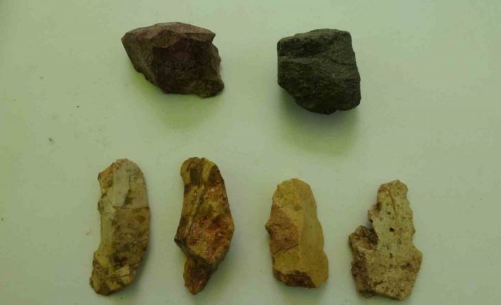 “Mağarada henüz organik bir kalıntı yani bu o dönemde mağarada yaşamış insanların kendi iskelet kalıntılarını, onların avlanarak beslenme sırasında tükettikleri mutfak artıkları olan hayvan kemiklerini ya da bitki kalıntılarını henüz bulamadık. Muhtemelen belki toprağın yapısı nedeniyle kısmen çürüme olabilir. Ama taşlar daha dayanıklı olduğu için binlerce, milyonlarca yıl sağlam kalabiliyor. Mağaranın farklı bölümlerinde organik kalıntıların da korunmuş olabileceğini düşünüyoruz. Genelde biz buluntularımız içerisindeki yontma taş aletlerin bütününü fosil insanların bir alet çantası olarak değerlendiriyoruz. İnkaya Mağarası aslında bir çakmaktaşı kayalığından meydana geliyor. Bu bakımdan aslında insanların burayı tercih etme sebeplerinden bir tanesi de bu. Yani hammadde kaynakları zaten yaşam alanları. Ham madde bulabilmek için kilometrelerce öteye gitmek durumunda kalmıyorlar. Hemen mağaranın duvarından kopardıkları herhangi bir parçayı işlemeye başlayarak, burada gördüğünüz çeşitli aletleri üretmeye çalışıyorlar. Bu bir dişlemeli alet, bir anlamda bugün bizim bildiğimiz testere benzeri bir maksatla kullanılmış olabilir. Burada gördüğünüz bir ön kazıyıcı, parça koptuktan sonra kenarlarında daha küçük işlemler yapılarak ön tarafı daha keskin bir işlevsel olarak kullanılıyor. Bu da saplı aletlerimizden bir tanesi, aletin sap kısmını incelterek belki bir ağaç dalının içerisine, belki bir kemiğin, boynuzun içerisine reçine yardımıyla yerleştirerek onu bildiğimiz bir saplı alet olarak kullanıyor. Kenarını işleyerek işlevsel hale getiriyor. Bunu belki toprağı kazmak için, hayvanın derisini sıyırmak için kullanıyor. Hangi maksatla kullanıldığını sonraki yıllarda taşlar üzerinde yapacağımız mikroskobik analizlerle belirleyeceğiz. Şu anda genel kullanım alanı olarak değerlendiriyoruz. Bu taşları mağaranın doğu tarafında tespit ettik. Bulduklarımız 86 bin yıllık dönem içerisinde değerlendirilecek. Bu, bizim çekiç dediğimiz vurgaç alet. Farklı bir ham madde kaynağı, bazalttan üretiliyor. Bu da ana kütleye vurularak parça koparılmasına, yonga üretimine yol açıyor. Daha sonra çekiç de bazen kırılabiliyor. Ana kütleden daha fazla parça koparamayacağını düşündüğü için de çekirdeği böyle terk etmek zorunda kalıyor. Aslında bu taşların orijinali çok daha büyük bir parça. Çevredeki birçok yonganın bu çekirdeğin üzerinden koptuğunu söylemek mümkün” diye konuştu.