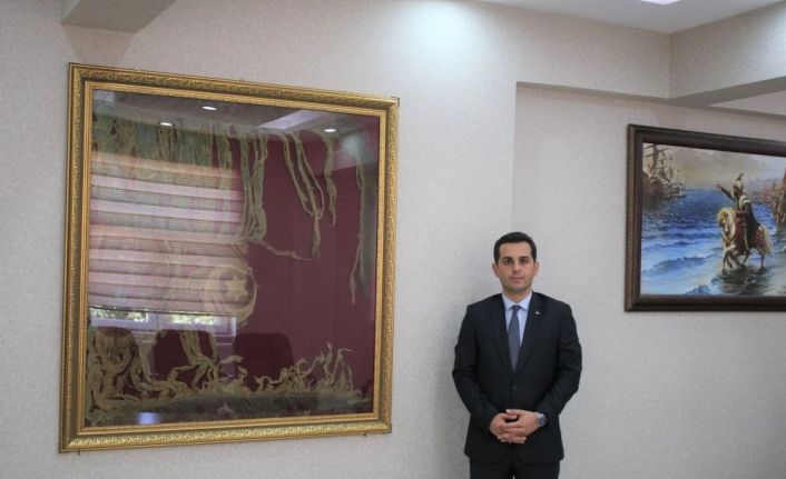 Bursa’da 130 yıl önce Sultan Abdülhamit Han tarafından Harmancık Beyine gönderilen tarihi sancak Kaymakamlık Makamına asıldı.