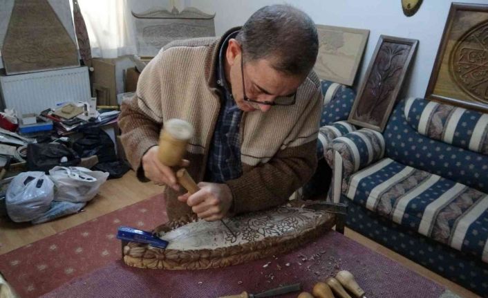 Malatya’nın Battalgazi ilçesinde yaşayan 59 yaşındaki Mehmet Kiriş atölyeye dönüştürdüğü evinde 12 yıldır ahşabı sanata dönüştürüyor.