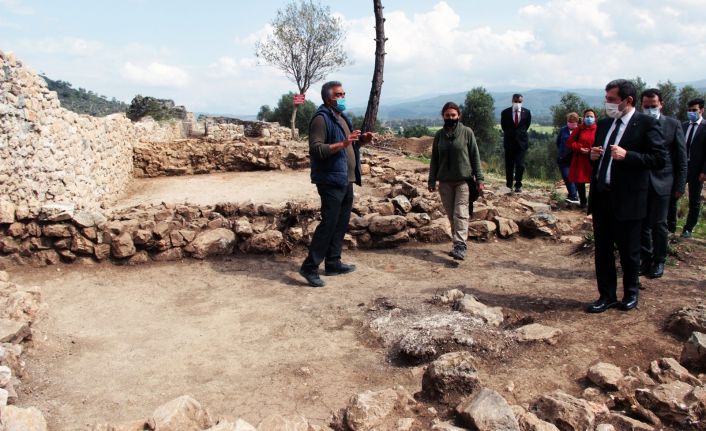 Muğla Valisi Orhan Tavlı ve İçişleri Bakanlığı Yatırım İzleme Koordinasyon Daire Başkanı (YİKOB) Muhsin Eryılmaz İdyma Antik Kenti’nin bir parçası olan ve Ortaçağ Akyaka kalesindeki kazı ve restitüsyon çalışmalarını yerinde inceledi. Çalışmaları yürüten ekipten bilgi alan Vali Tavlı ve YİKOB Daire Başkanı Muhsin Eryılmaz, kalenin 7 aylık bir süreçte ortaya çıkarılan yaklaşık 250 metre uzunluğundaki bölümünde yer alan bölüm ve kulelerde inceleme yaptılar.