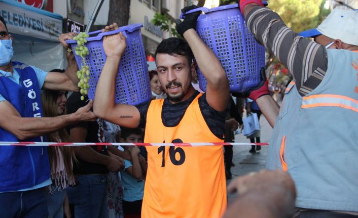 Manisa’nın Alaşehir ilçesinde bu yıl 2 yıllık pandemi sürecinin ardından üçüncüsü düzenlenen Alaşehir Üzüm Festivali renkli görüntülere sahne oldu. Festivalde yarışmaya katılanlar, “Kelter” adı verilen 50 kilogramlık üzüm sepetlerini en hızlı çeken unvanını alabilmek için kıyasıya yarıştı.