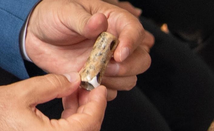 "Deliklerin bir tanesi kırıldığı için kullanım dışı kalan üflemeli çalgı avlu dolgusu içerisinde bulundu"