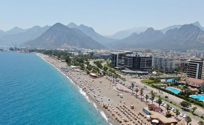 Sıcaklığın 38 dereceye, nem oranını yüzde 78’e ulaştığı turizm kenti Antalya’da aşırı sıcağa rağmen sahilde yoğunluk dikkati çekti. Temmuz güneşine rağmen yerli ve yabancı tatilciler şezlong ve kumlar üzerinden bronzlaşmaya çalıştı. Her zamanki gibi denizin keyfini çocuklar çıkardı. Pandeminin devam etmesine rağmen sahilde sosyal mesafenin korunduğu ama maske kuralına uyulmadığı görüldü.