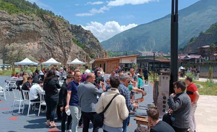 Artvin Kaledibi iskele sosyal tesislerinde yapılan etkinliğe katılan misafirlere Artvin’e özgü yöresel tatların yanı sıra cağ döner ikram edildi.