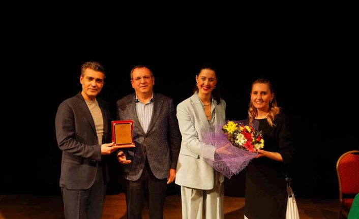 Başkan Ergin ve eşi Canan Ergin; Birkan ve Cindoruk’a plaket ve çiçek takdim ederek başarılı bir oyun sergilemeleri nedeniyle her iki sanatçıyı da kutladı.
