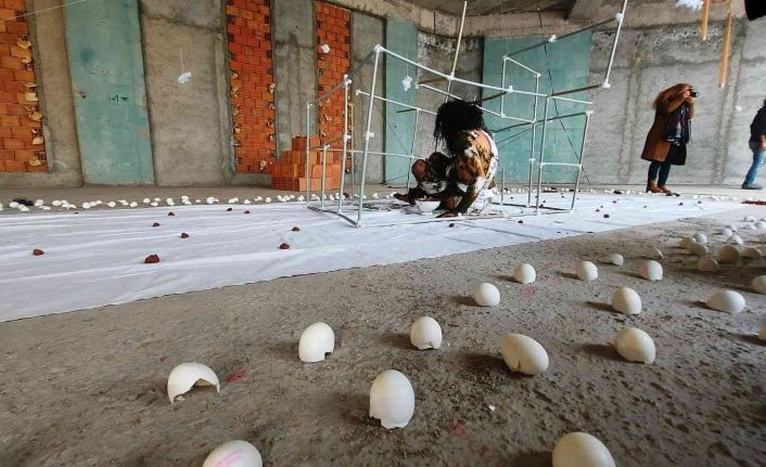 İnşaata sergilenen deneysel müzik eşliğinde performans sanatı gösteride bir insanın evinde yaşadığı zorlukları anlattığı ve her zorluğu yendiğinde yeni bir zorlukla karşılaştığının anlatan gösterinin ardından kısa bir açıklama yapan Öngenç, kendi yaşamını anlattığını ifade etti. Muğla Sıtkı Koçman Üniversitesi Güzel Sanatlar Fakültesi Yüksek Lisans Bölümü öğrencisi Menderes Öngenç, “Bu sanat çalışması tez projemdi. Bir bireyin, yuva ve evle bütünleşebilmesi için karşılaştığı zorluklarla ya da kendi geçmişiyle kendi memleketine özlemle hatırlanan bir duyguyu dile getirdim. Bir insanın sıkışıp kalmışlığını aslında anlatıyorum. Buradaki toprak ile de geçmişiyle yüzleşmesi olarak adlandırıyorum. Yumurta kabukları bir doğumun, saflığı ve yeni bir yaşamın varlığını temsil ediyor. Bu yuvadan uçan kuşların yumurtaları da olabilir ya da bir bireyin kendi yuvasını yaparken simge olarak göstermiştim. Çok uzun zamandır yumurta kabuklarını topluyorum. Bu performansı ilk defa sergiledim” dedi.