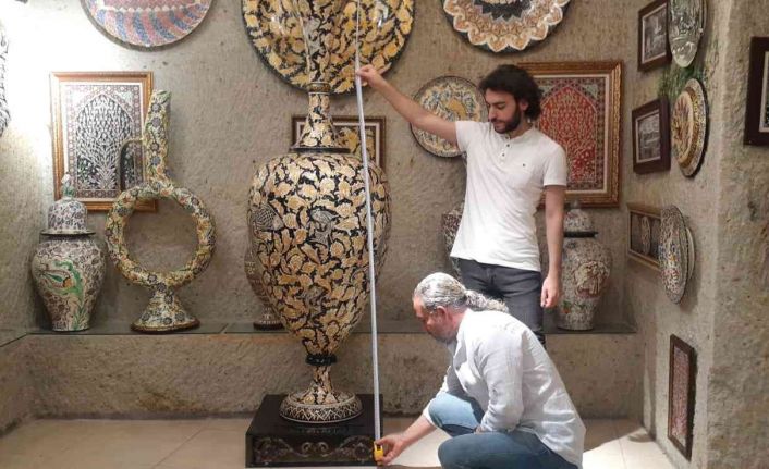 Nevşehir’de 30 yıldır seramik ustalığı yapan Niyazi Erdoğan’ın en son yaptığı ve boyunu aşan seramik vazoya değer biçilemiyor.