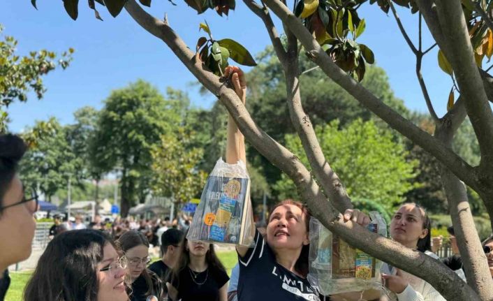 Bursa Kent Konseyi’nin kitap okumayı yaygınlaştırmak amacıyla başlattığı ‘Okuduğun kitabı getir, ağaca dönüşsün’ projesini kapsamında Merinos Parkı’ndaki ağaçlara kitaplar asıldı.