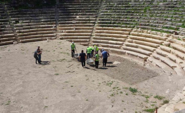 Kastabala Antik Kenti’nin tiyatro alanında kazı çalışmalarının devam ettiğini ifade eden Kültür ve Turizm Müdürü Burhan Torun, “Bugün itibariyle kısa bir ara verdiğimiz kazı kurtarma çalışmasına Kastabala’da tekrar başlamış bulunmaktayız. Burası Kastabala ören yerinin tiyatro alanı. Özellikle bu bölgeden kazı çalışmasına başladık. Bu görmüş olduğunu açık renkli oturma düzenekleri son zamanda ortaya çıkarmış olduğumuz alan. Hedefimizde burada bir buçuk metre kadar derine inip toprağı tahliye etmek var. Buraya Çukurova’nın Efes’i de diyebiliriz. Çünkü burada hala ayakta kalan sütunlu yolun olması ve tiyatral alanının olması ve Roma Döneminde buranın bir antik kent olması anlamında değerlendirilmesi anlamında gerçekten önemli bir yer” dedi.