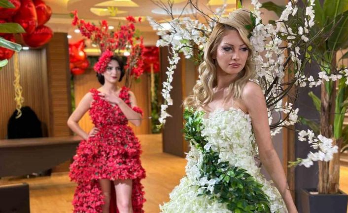 Modellerden Sena Selenbenar, kendini çiçekler içinde hissettiğini belirterek, “Tüm çiftlerimizin sevgililer günü kutlu olsun. Daha önce de sürekli gelinlik giyerdim. Ama bu kez ilk defa böyle çiçekten gelinlik giydim. Çok güzel bir his. Kendimi çiçekler içinde hissediyorum” diye konuştu.