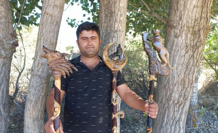 Yozgat’ta kuş, kurt, aslan, leopar gibi hayvan figürlerini ceviz ve gürgen dallarına işleyerek birbirinden değişik ve farklı özelliklere sahip baston ve asa üreten Müslüm Bükücü, görenlerin beğenisini kazanıyor.