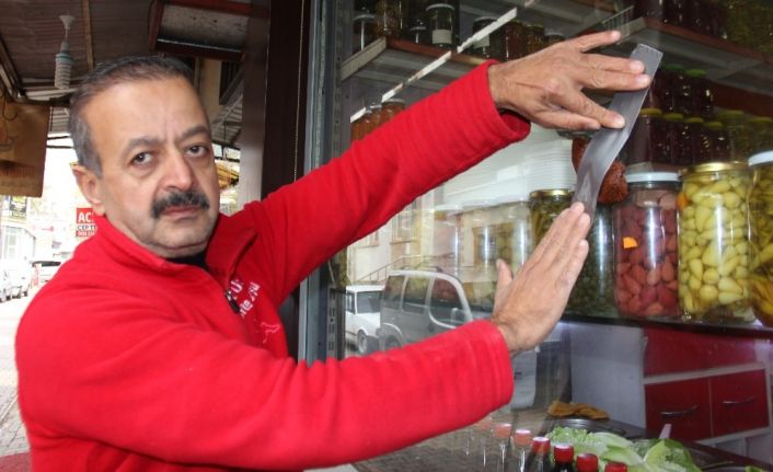 Kayseri’de pastırma, Trabzon’da hamsi kullanılırken Adıyaman’da da çiğ köfte kullanıldı. Adıyaman’ın meşhur çiğ köftecisi Sait Önder, yoğurduğu çiğ köfteyi duvar yerine cama bantladı.