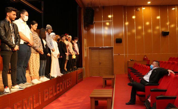 Erdemli Belediyesi tiyatro ekibi, aylar sonra down sendromlu Mehmet Ali Şavk için perdeleri araladı. Online olarak ulaştıkları izleyiciyi gülümseten tiyatrocular, ’Başkan’ lakaplı Mehmet Ali Şavk için yaptıkları anlamlı çalışmayla da yürekleri ısıttı.