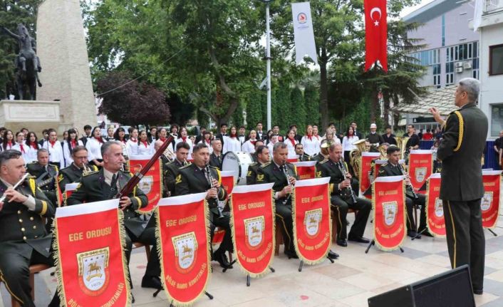 Ege Ordusu Bölge Bando Komutanlığı, 19 Mayıs Atatürk’ü Anma, Gençlik ve Spor Bayramı kapsamında Denizlili 80 öğrenci ile birlikte kent meydanında konser verdi.