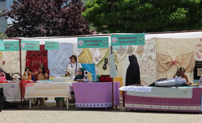 Halk Eğitimi Merkezi Müdürlüğü olarak yaklaşık 15 dalda 50 kursiyerin çıkartmış olduğu ürünlerle yıl sonu sergilerini gerçekleştirdiklerini belirten İlçe HEM Müdür Yardımcısı Ferhat Sönmez, "Arkadaşlarımız, usta öğreticilerimiz, ev hanımlarımız el emeği göz nuru ürünlerini burada sergilemiş bulunuyorlar. Bir birinden değerli, birbirinden kıymetli ürünler, yıl boyu çok ciddi emekler sarf edilerek yapılmış ürünler şu an burada sergilenmiş oluyor. Bu yılki yılsonu sergimizin bizim için çok anlam ifade eden özel bir tarafı var. Geçen yıl korona virüsten kaybettiğimiz usta öğreticimiz Neriman Özgün ve yakın zamanda kaybettiğimiz daha önce bizim kurum müdürlüğümüzü yapmış Abdulvahap Salcan hocamızın anısına biz böyle bir sergi düzenlemiş bulunuyoruz. Çok anlamlı gerçekten bizim için. Normalde her yıl geleneksel olarak düzenlemiş olduğumuz bu sergide müzikal gösteriler ve eğlenceler de oluyordu ama bu yıl özellikle bunu yapmama kararı aldık ve onların ruhlarına okuduğumuz Kur’an-ı Kerim hatim dualarını okuyarak biz açılışımızı gerçekleştirdik" diye konuştu.