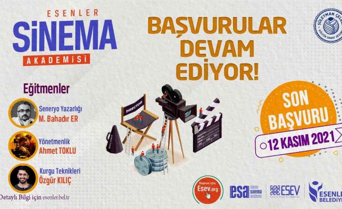Sinema alanına yeni yetenekler kazandırmak amacıyla Esenler Belediyesi tarafından düzenlenen Sinema Akademisi’nin dördüncü dönem başvuruları devam ediyor. Pratik ağırlıklı dört aylık bir eğitimin verileceği akademiye başvurular 12 Kasım’a kadar devam ediyor.