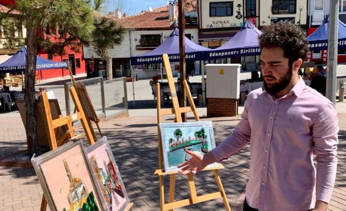 Odunpazarı bölgesinde hafta sonu eserlerini sergileme fırsatı bulan Hasan Özbey Ozar, pandemiyle başladığı sanatta birbirinden farklı eserler üretmeyi başardı. İnternette gördüğü filografi sanatını, tutkusu haline getiren Hasan Özbey Ozar, boş zamanlarında birçok eser üretiyor. Kilometrelerce renkli bakır teli, binlerce çivinin arasından sararak birbirinden güzel resimleri ortaya çıkarak Ozar’ın aralarında Eskişehir’i de resmettiği toplam 50’den fazla yaptığı çalışma bulunuyor. Eskişehirliler ve turistler tarafından beğeniyle karşılanan eserlerin en ilginç olanları ise Eskişehir’in tanınan yerleri ve Osmanlı Tuğrası.