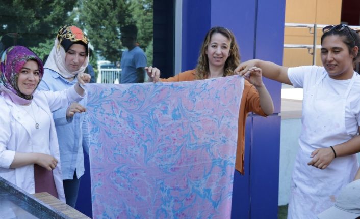 Ebru sanatını öğrenmek için sabır gerektiğini söyleyen eğitmen Fatma Gül Kuştan, “Ebru sanatına yoğun bir şekilde katılım var ve öğrencilerimiz de çok seviyor. Bugün farklılık olsun diye kağıt yerine bez parçasına yapmak istedik. Bu mesleği öğrenmek zor değil ama sabır gerektiriyor. Bir öğrenci 1 ayda ebru sanatını küçük tekniklerle öğrenebilir" diye konuştu.
