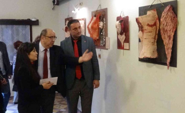 Balıkesir’in Edremit ilçesinde, sanatçı Gizem Yoğurtçu, geri dönüşüm malzemeleri ile yaptığı eserlerine yer verdiği sergide kadına uygulanan şiddeti anlatıyor.