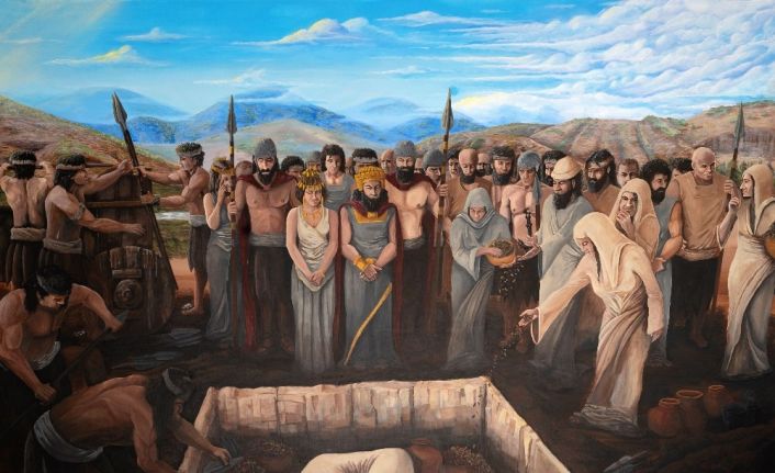 Paleolitik çağ alet yongalama (6 adet), Neolitik çağ konut yapımı (6 adet), Neolitik çağ ölü gömme gelenekleri (5 adet), Anadolu’da yaşamış ve yaşayan bitkiler (5 adet), Anadolu’da yaşamış ve yaşayan hayvanlar (8 adet), Tunç Çağı ölü gömme gelenekleri (1 adet 230cm-160cm akrilik tablo), Onbinlerin Dönüşü (1 adet 370cm-270cm dijital tablo)