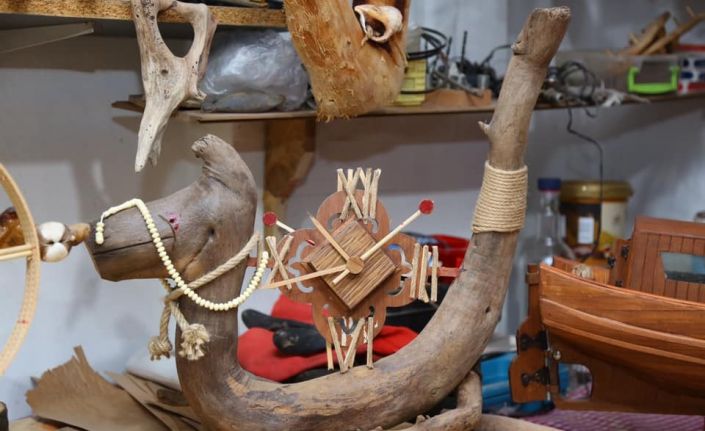 Ünye’nin Ortayılmazlar Mahallesi Derya Hamamı Sokak’ta bulunan ufak atölyesinde çalışmalarına devam eden İhtiyaroğlu, deniz kenarından topladığı ağaç parçalarından aldığı ilhamla hobi olarak ahşap gemi, saat ve benzeri ahşap oymacılığı sanatına devam ederek her birini sanat eserine dönüştürdü.