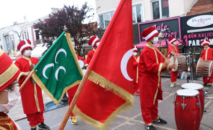 Edirne’de hayat boyu öğrenme haftası kutlama programı çerçevesinde sahneye çıkan ilkokul öğrencilerinden oluşan mehter takımı katılımcıların ilgi odağı oldu.