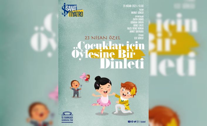 23 Nisan Ulusal Egemenlik ve Çocuk Bayramı kutlamaları kültür merkezinin nisan programını renklendiriyor. İş Sanat’ın Türkiye İş Bankası Kumbara Fonu işbirliğinde çocuklara özel olarak hazırladığı programda Semaver Kumpanya oyuncularının eğlenceli kukla oyunu ‘Nasrettin Hoca’, Murat Göksu’nun müzikli tiyatrosu ‘Çocuklar İçin Öylesine Bir Dinleti’ ve ‘Keloğlan’ masal tiyatrosuna yer veriliyor.