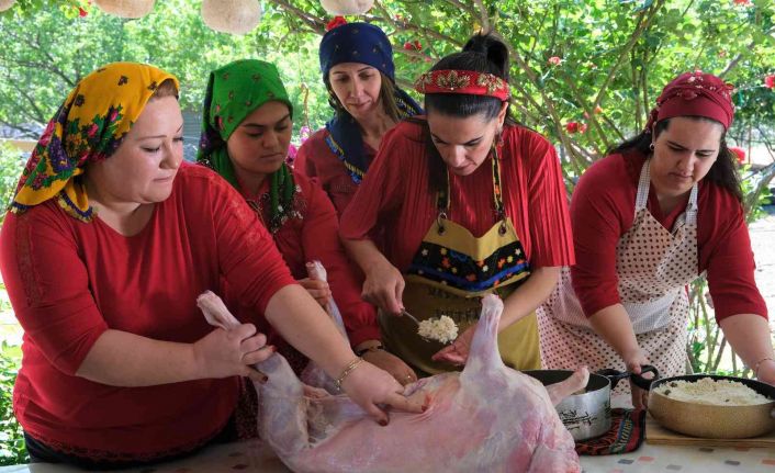 Seferihisar’ın Hıdırellez adetlerini anlatan Seferihisar Hanımeli Kadın Girişimi Üretim ve İşletme Kooperatifi Başkanı Fikriye Sayarer Evin şöyle konuştu: “Seferihisar Hanımeli Kadın Girişimi Üretim ve İşletme Kooperatifi olarak hem adetlerimizden hem de bu güne özel yaptığımız yemeklerimizden bahsetmek istedik. Fırına koyduğumuz, hazırladığımız oğlak dolmamız var. Bu dolmamız, içini pirinç ve ciğerle kavurarak hazırladığımız bir dolma. Üstüne yine oğlağımızın iç yağını gömlek yağını koyup fırına verdiğimiz bir dolma.”