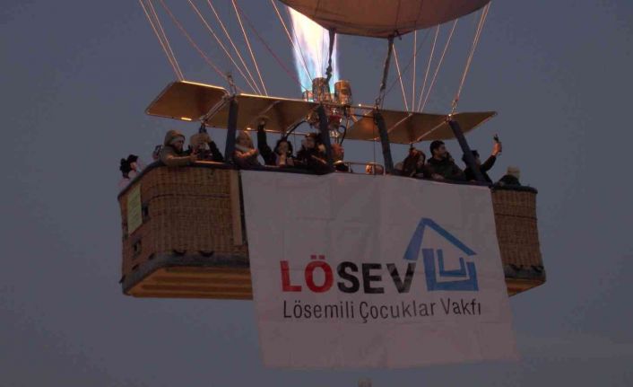 Kapadokya bölgesinde havalanan sıcak hava balonları LÖSEV pankartları ile havalandı.