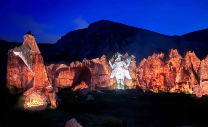 Kapadokya’da tarih peribacalarına yansıtıldı