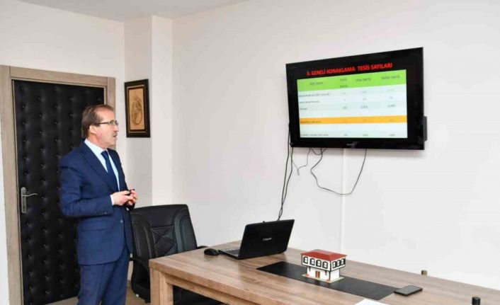 Karabük Valisi Fuat Gürel, 2023 yılı kurum denetimleri çerçevesinde İl Kültür ve Turizm Müdürü İbrahim Şahin’den 2022 yılında yapılan çalışmalar hakkında brifing aldı. İl genelinde 143 tesiste bin 822 oda, 3 bin 892 adet yatak bulunduğunu ifade eden Şahin, "2022 yılında il genelinde 82 adet konaklama tesisinin denetimi yapılarak ’Basit Konaklama Turizm İşletme Belgesi’ verilmiştir. Konaklayan turist sayıları bir önceki yılla karşılaştırıldığında 2022 yılında 174 bin 866 yerli turist ve 13 bin 192 yabancı turist olmak üzere toplam 188 bin 58 turist ilimizi ziyaret etmiştir. 2021 yılı ile kıyaslandığında yerli turistte yüzde 10,5 artış, yabancı turistlerde yüzde 100 artış gerçekleşmiş, toplam turist sayasında da yüzde 14 artış gerçekleşmiştir" dedi.