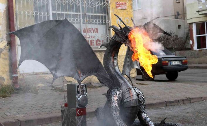 Sivas’ta yaşayan demir doğrama ustası İbrahim Doğan, hurda ve metal malzemeleri bir araya getirerek adeta bir sanat eserlerine dönüştürüyor. Küçük yaşlardan buyana demir işçiliğinde yeteneği olan Doğan, son olarak 160 santimetre boyunda ve yaklaşık 80 kilo ağırlığında hareket eden ve ağzından alev püskürten bir ejderha tasarladı. Doğan’ın elektronik ve mekanik aksamlar kullanarak ortaya çıkarttığı metal ejderhanın yapımı yaklaşık 4 ay sürdü. Özellikleriyle adeta gerçek bir ejderhayı andıran eser vatandaşlar tarafından yoğun ilgi gördü. Doğan, böyle bir modeli ilk defa kendisinin tasarladığını belirterek, ejderhayı görenlerin şaşkınlık yaşadığını ve yoğun ilgi gösterdiklerini söyledi.