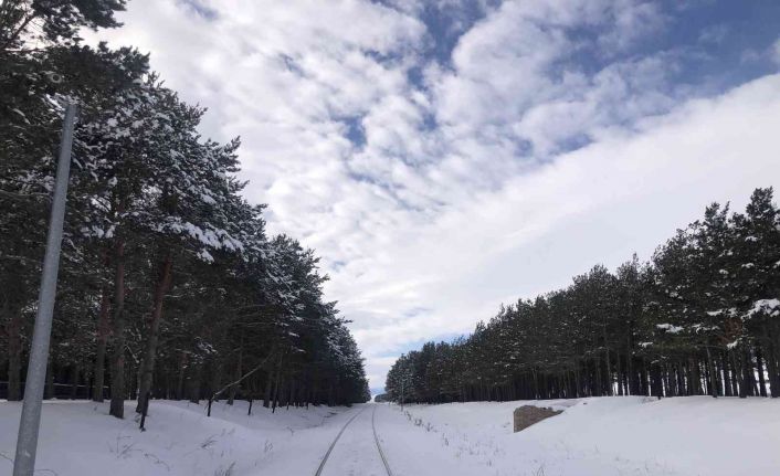 Kars’ta yağan kar güzellikleri de beraberinde getirdi. Tarihi Benliahmet İstasyon’da çam ağaçlarının gökyüzündeki bulutlar ve kar ile bütünleşmesi görenleri büyüledi.